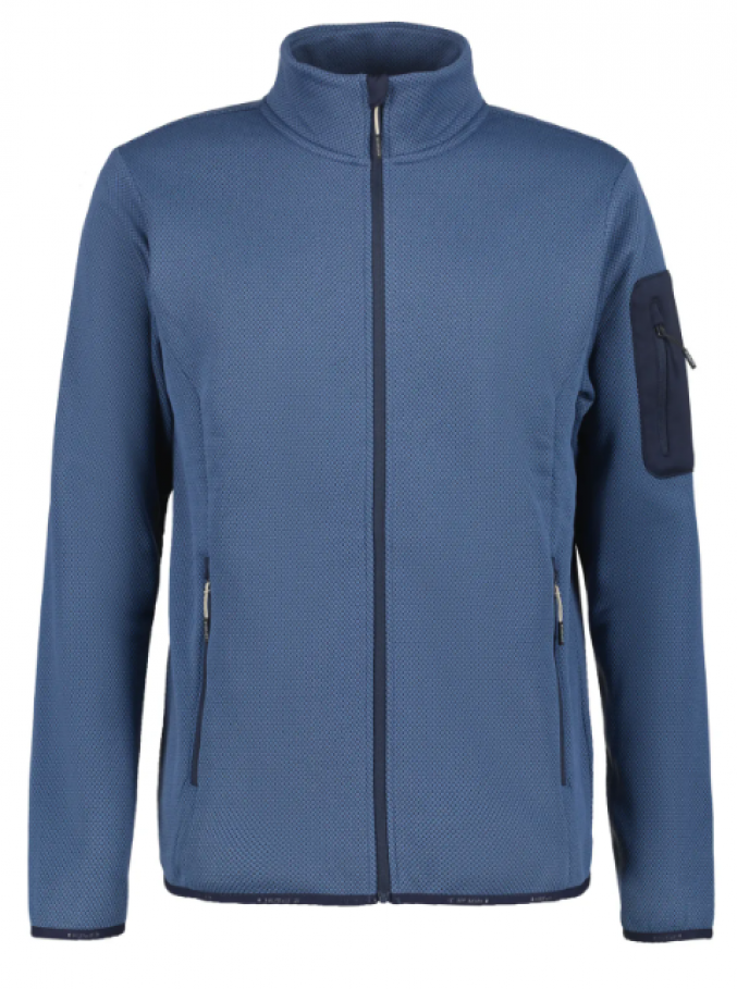 Pánská střední vrstva Icepeak. Běžný střih. Elastické manžety. Dvě přední kapsy na zip. Kapsa na zip na rukávu. Větruvzdorná léga. Ochrana brady na předním zipu. Elastický lem. Potisk loga. Termo materiál je hřejivý, lehký a rychle schne.