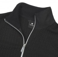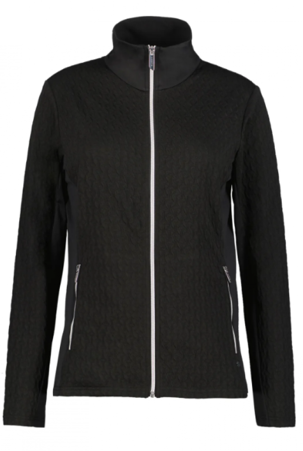 Mikina má klikatý vzor látky a ozdobné zipy.