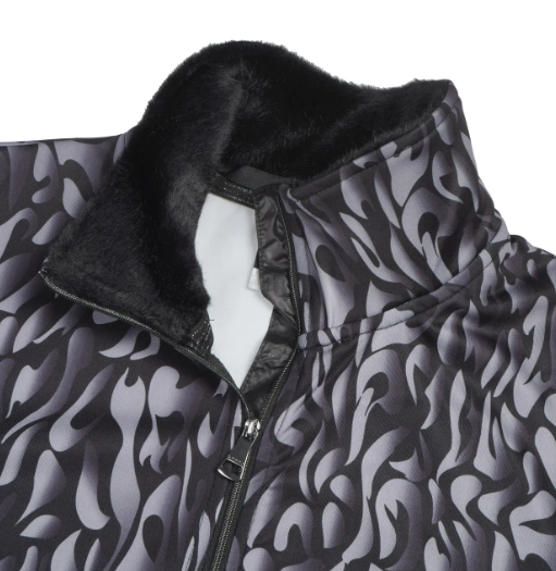 Ozdobné přední zapínání na zip. Štítek s logem. Tištěný vzor.