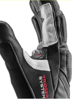 Rukavice Leki Griffin Pro 3D jsou ideální pro náročnější lyžaře, kteří hledají propracované a chránící rukavice, které využívají některé prvky ze závodních rukavic. Svršek je vyroben z kozí kůže, softshellu a neoprenu, dlaň je rovněž vyrobena ze 100% kozí kůže s dodatečnou gripovou nášivkou ze Silicone Nash. To zajišťuje pohodlné nošení a zároveň vysokou přilnavost k holi. Izolace Primaloft® v kombinaci s výstelkou Micro Bemberg poskytuje optimální ochranu před chladem. Systém Trigger 3D umožňuje zacvaknutí do hole během několika sekund, čímž zajišťuje přímé spojení mezi rukavicí a holí, a tím i nejlepší přenos síly. Díky technologii mf touch není základní ovládání chytrých telefonů a podobných zařízení problém ani v rukavicích.